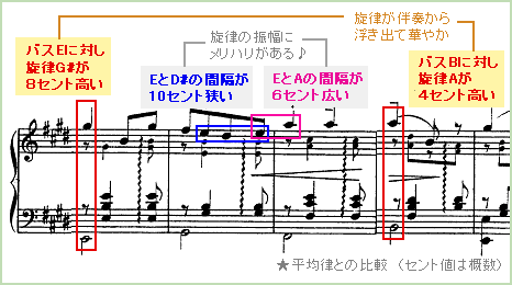 この曲に使うと平均律よりも旋律の音程が良く、華やいだ甘い雰囲気が大変良く出ます。