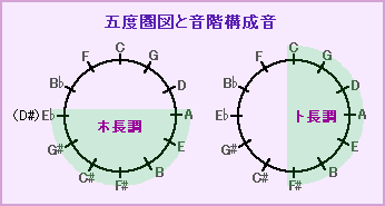 一方、ト長調の領域は狭い五度が三つも並んでいます。