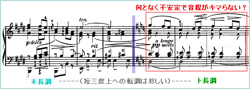 「ホ長調からト長調に転調した最初の2~3小節が妙に不安定な気が…?」
